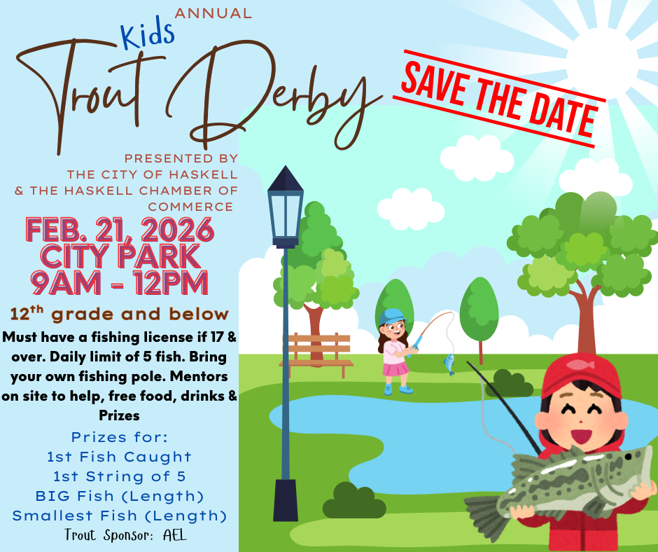 SAVE THE DATE! The Annual Kids Trout Derby is coming to Haskell City Park on February 21, 2026, from 1–4 ... Read More >