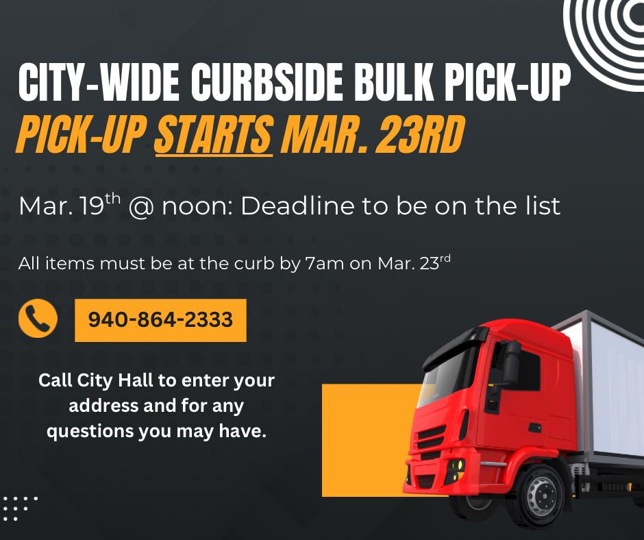 City-Wide Curbside Bulk Pick-Up Begins March 23rd! It’s time to clean out those garages, sheds, and backyards! The City of ... Read More >