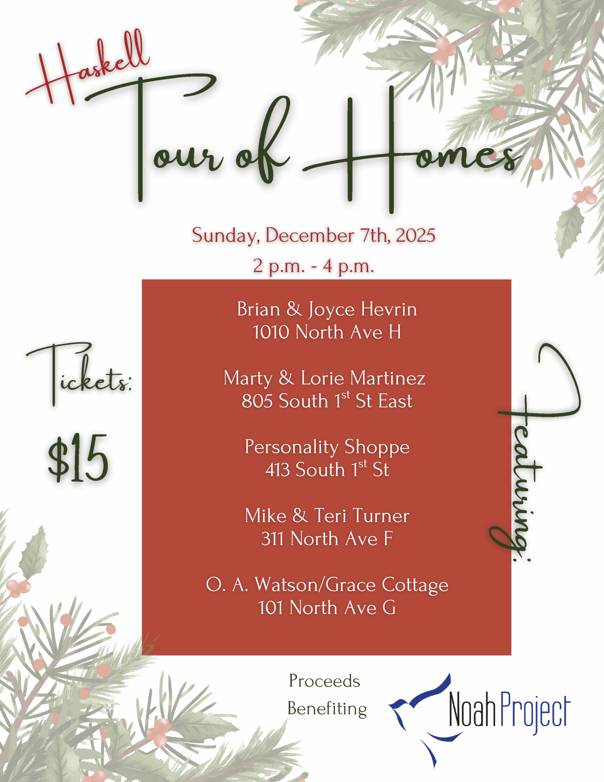 Noah Project - Haskell Tour of Homes - Proceeds Benefit the Noah Project. Sunday, December 1, 2024 2 p.m. - ... Read More > |
